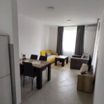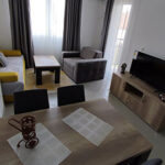 U dnevnom boravku se nalazi trosed na razvlačenje, fotelja na razvlačenje i sto za ručavanje. U hodniku se nalazi cipelarnik i ormar.