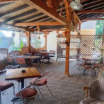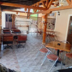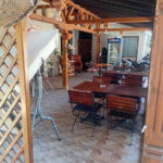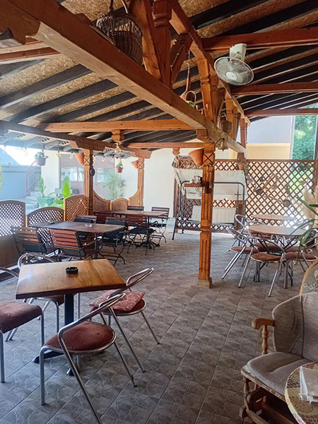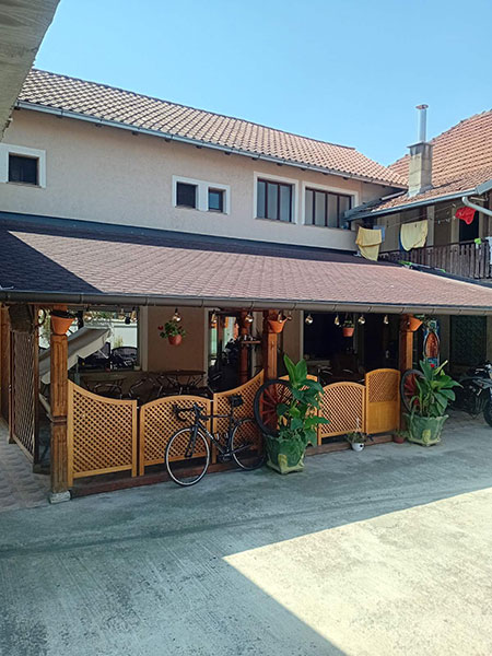U dvorištu Pink apartmana je natkrivena terasa od 50 kvadrata sa garniturama za sedenje i televizorom na kojoj je uglavnom tokom celog dana hladovina.
