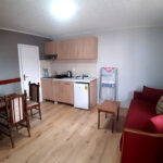 Na spratu objekta za smeštaj se takođe nalazi dnevni boravak sa komplet opremljenom kuhinjom, kupatilom, trpezarijom i spavaćom sobom sa jednim bračnim krevetom i dva kreveta za jednu osobu. U dnevnom boravku se nalazi kauč na razvlačenje. Smeštaj na spratu je takođe površine 54 kvadrata i može da ugosti 4+2 osobe.
