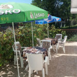 Gosti imaju na raspolaganju veliku terasu sa baštenskim garniturama. Gde imaju mogućnost odmora i predaha uz kafu.